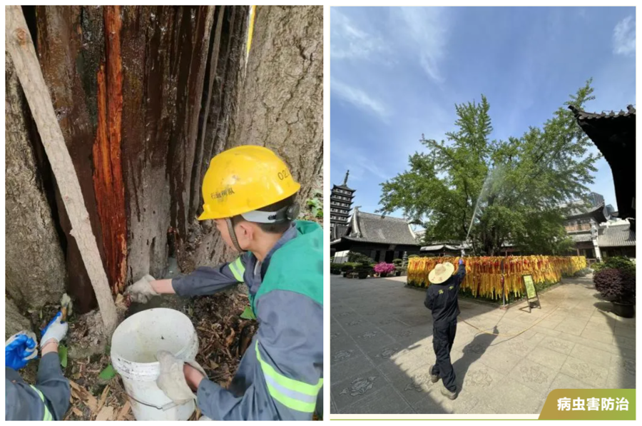 古银杏的养护。 上海市普陀区绿化建设管理中心供图