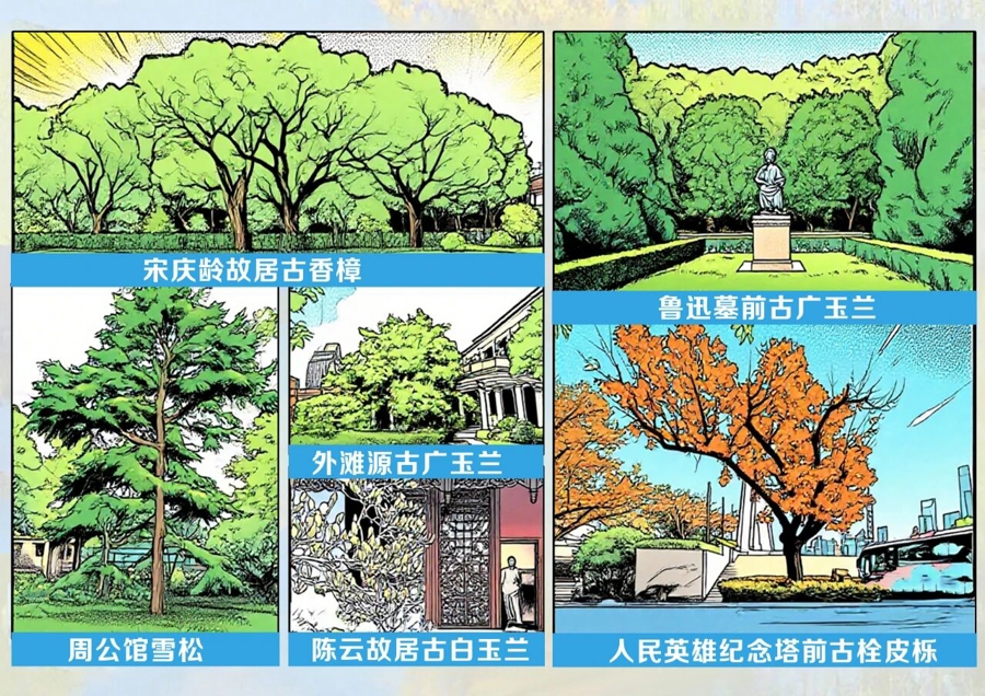 上海部分古树名木彩绘。 上海市绿化管理指导站供图